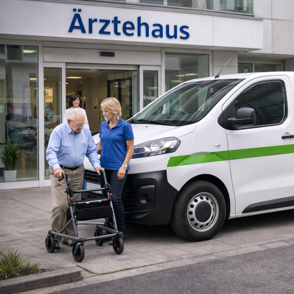 Arztpraxen, Fachärzten oder Kliniken und bringen Sie selbstverständlich auch wieder nach Hause.